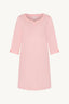 Dress in a woven linen with a slim neckline on the chest, pockets in the side seams and slits in the sleeves.