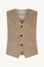 Tailored waistcoat in soft corduroy with a V-neckline and button closure. Designed with front welt pockets and an adjustable strap at the back for a perfect fit. A versatile layering piece that adds structure and sophistication to any outfit.