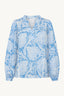 Viscose-skjorte med volangkrage og V-hals. Skjorten har legg på bryst og skuldre, samt elastiske ermer. Den er designet med hekledetaljer.